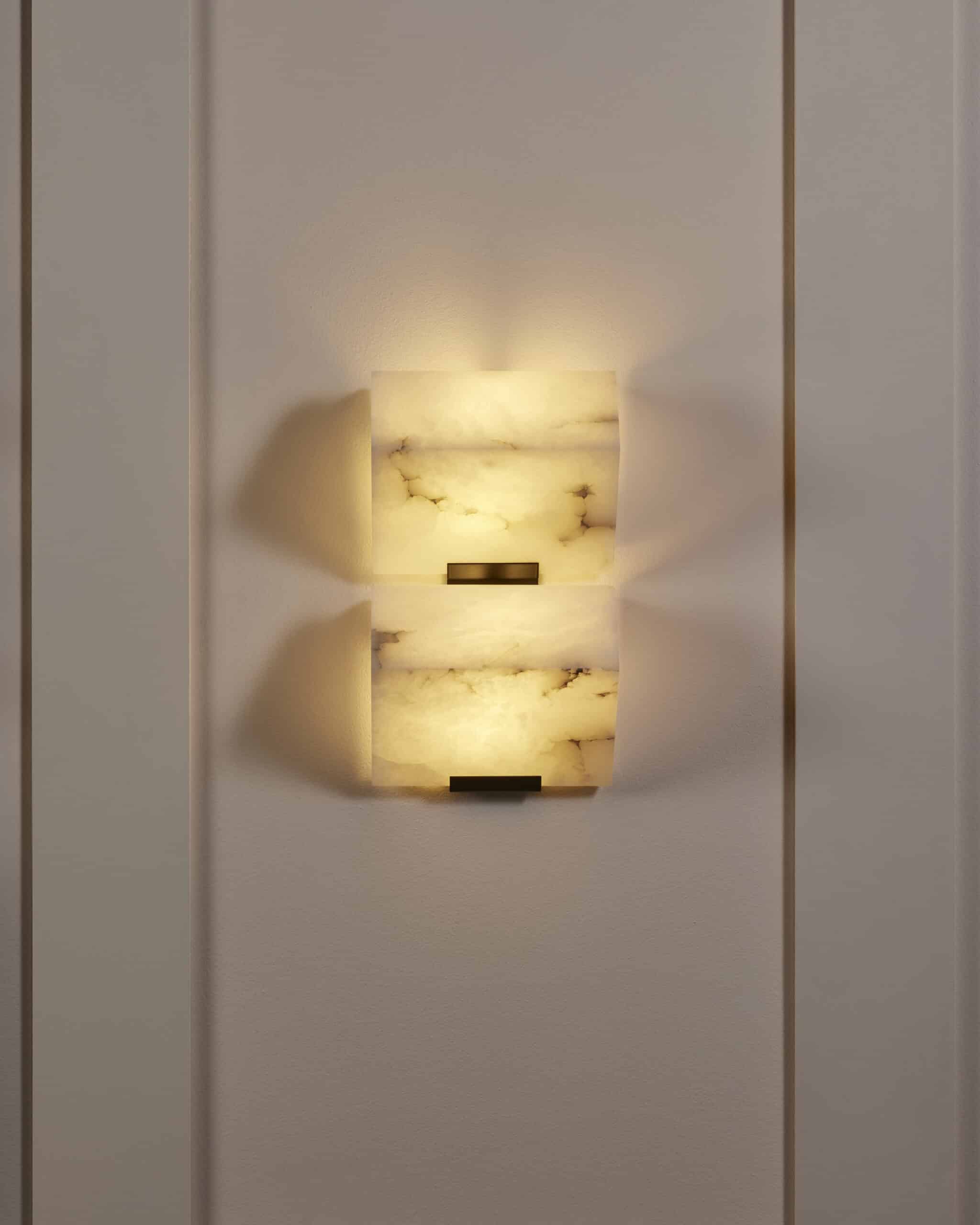 Wall lamp with two alabaster blocks