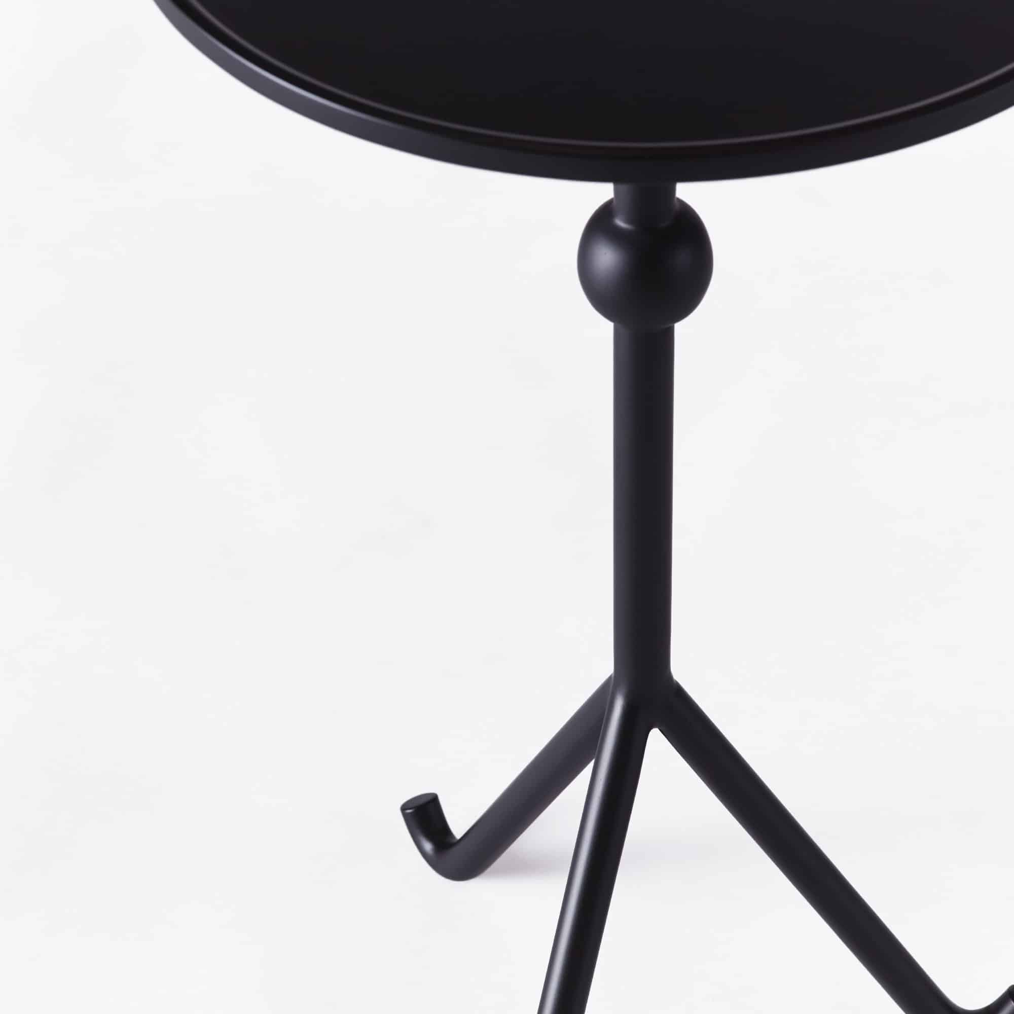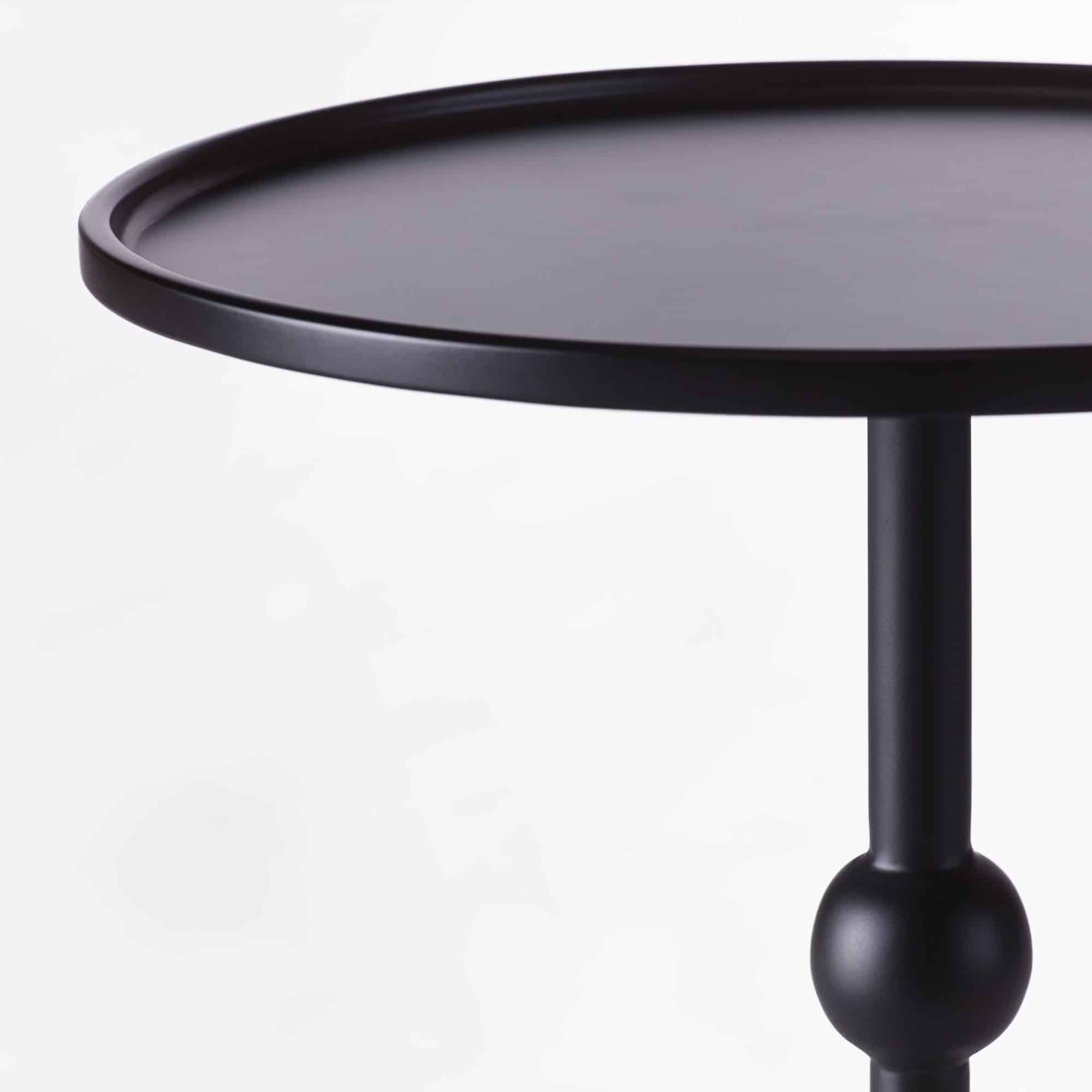 The Dusty Martini Table in black is a compact side table crafted from solid steel. Its clean, elegant shape brings a subtle balance of vintage and modern style, making it a striking yet versatile addition to living rooms and lounge spaces.