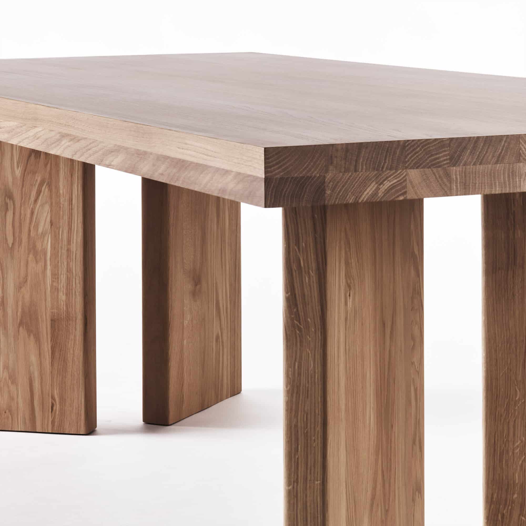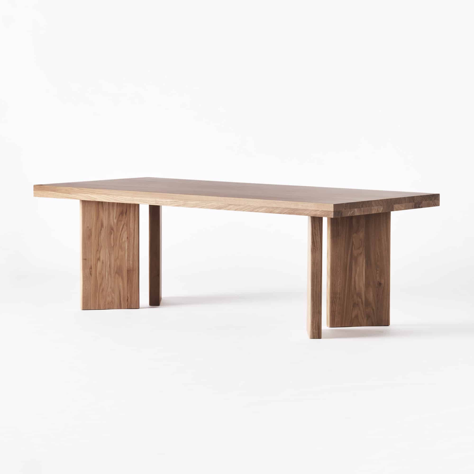 The French Dining Table is crafted from solid oak, defined by its clean, understated design. A sculptural V-shaped base adds a modern touch while maintaining a balanced, timeless expression.