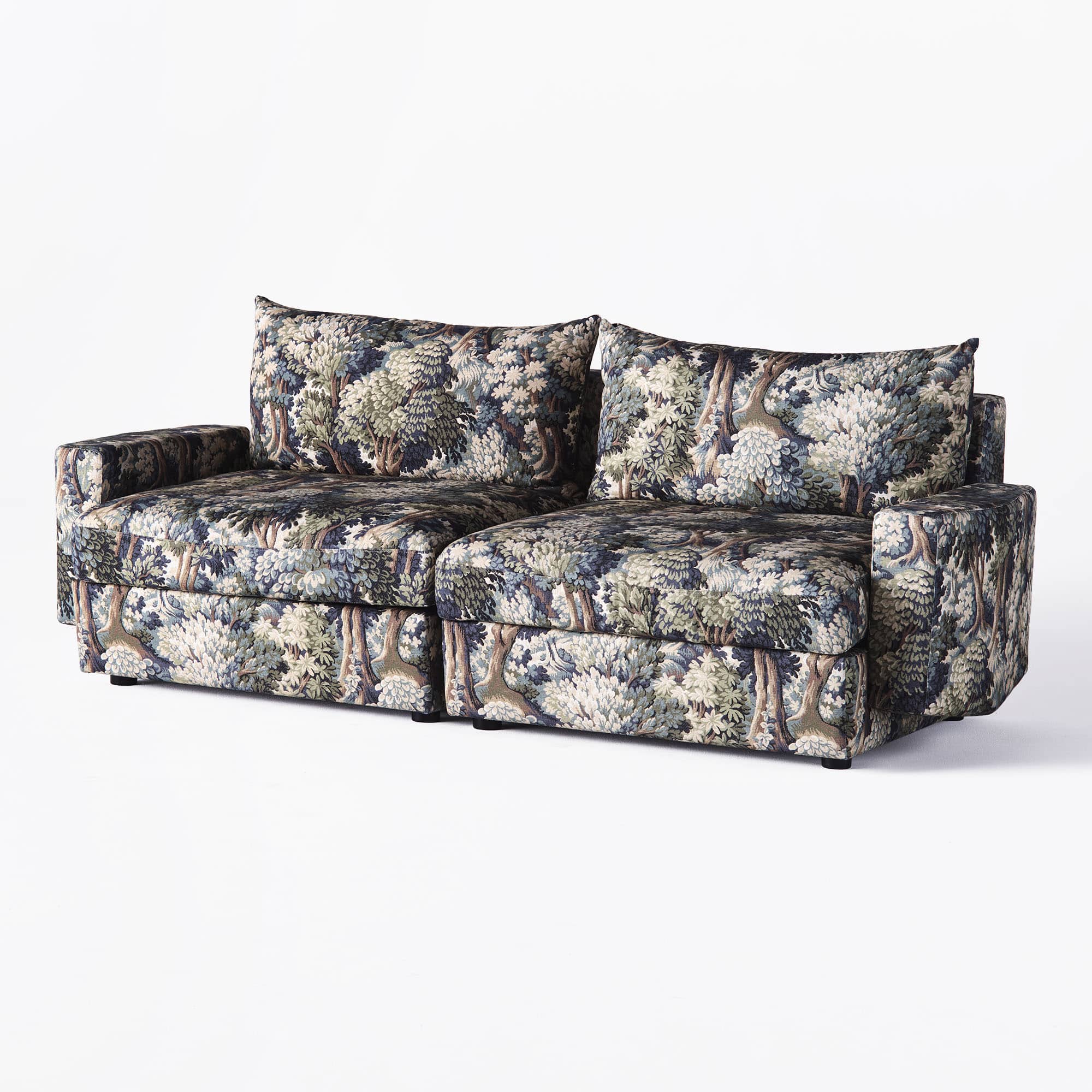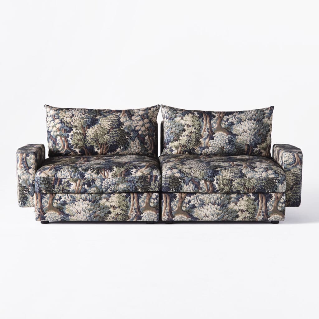 Upholstered in a patterned Lauritzon fabric in deep green tones, it adds character while remaining easy to style in both classic and contemporary interiors. Designed with plush cushions and a durable construction, it’s a versatile choice for living rooms and lounge spaces.