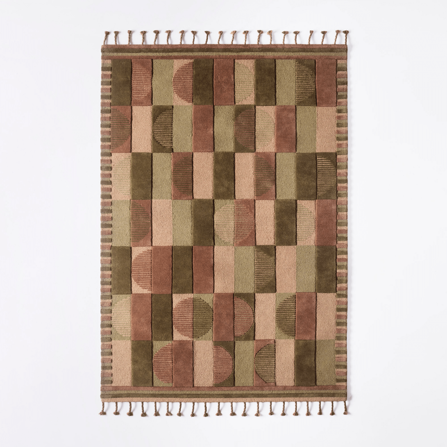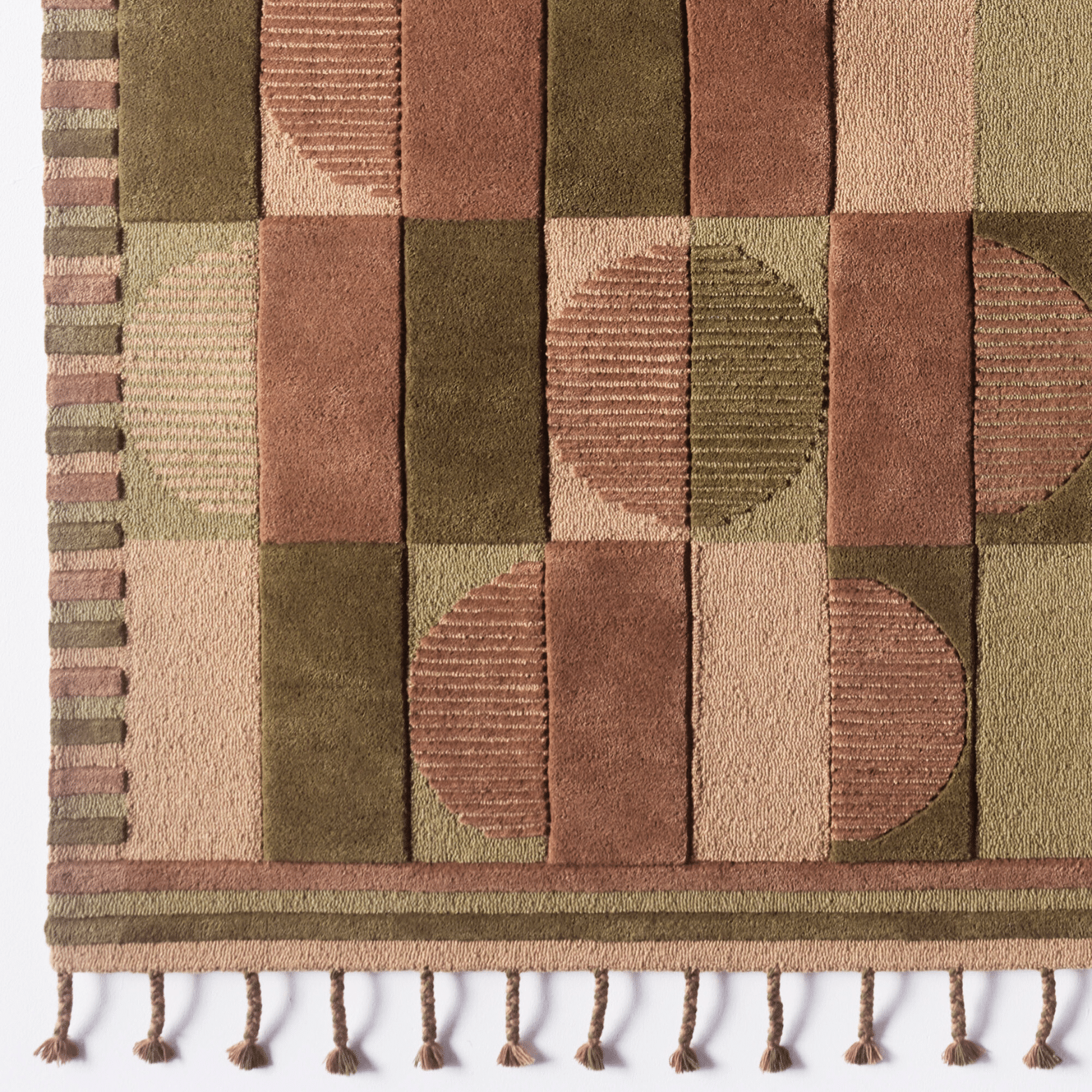 The Murillo Rug Multi Neutral is handwoven from 100% wool, featuring a layered pattern in soft, neutral tones. Decorative fringes on each side add movement and character, creating a subtle yet distinctive look.
