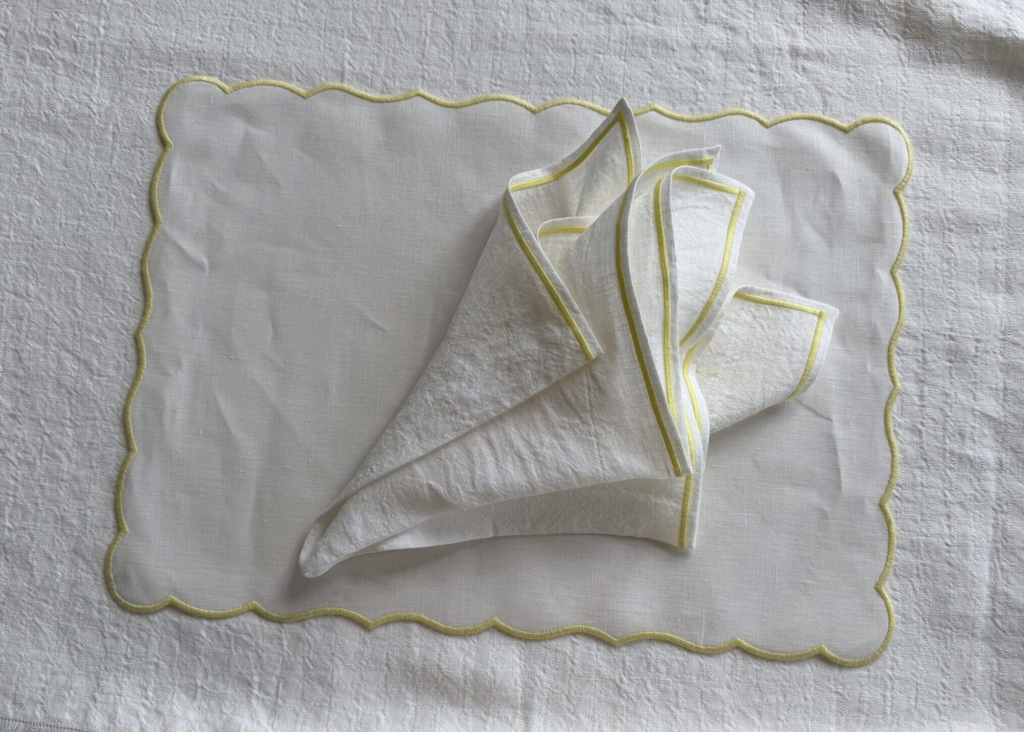The Lido Placemat is inspired by the relaxed elegance of the Venetian Lido. Crafted from coated linen, its scalloped shape adds a soft, decorative edge while bringing a subtle vintage touch to the table.