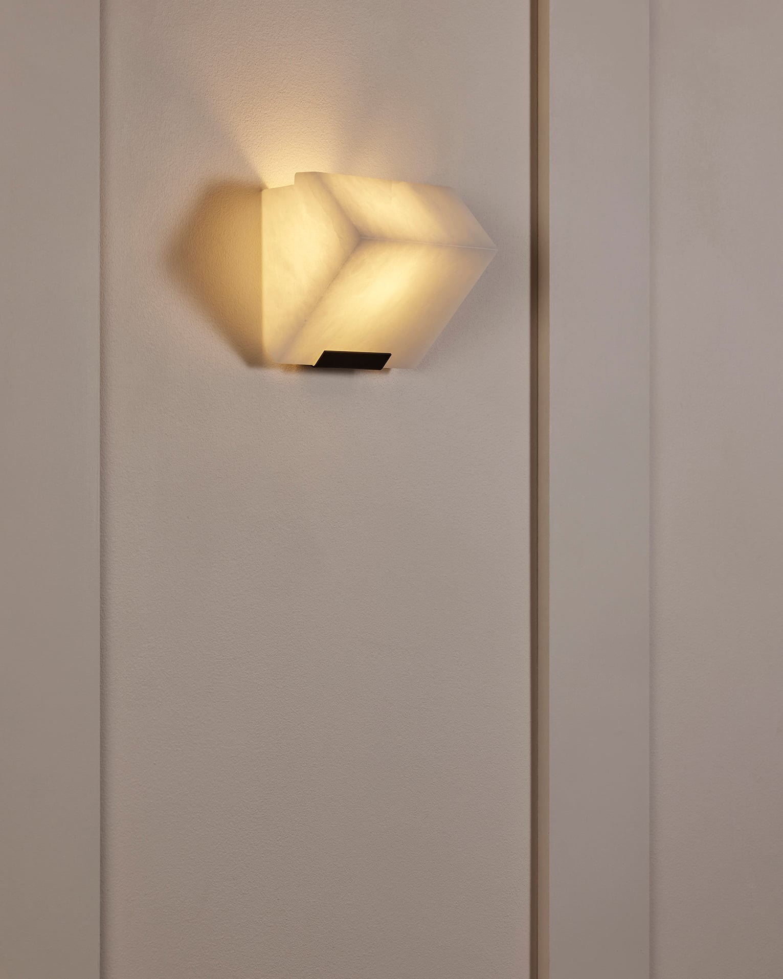 Created in 1923, the Sloping Block wall lamp is a definitive example of Pierre Chareau’s minimalist mastery. Predating his architectural masterpiece, the Maison de Verre, this design exhibits a rigorous geometric shape and a simple volume that perfectly highlights the raw, mineral quality of alabaster.